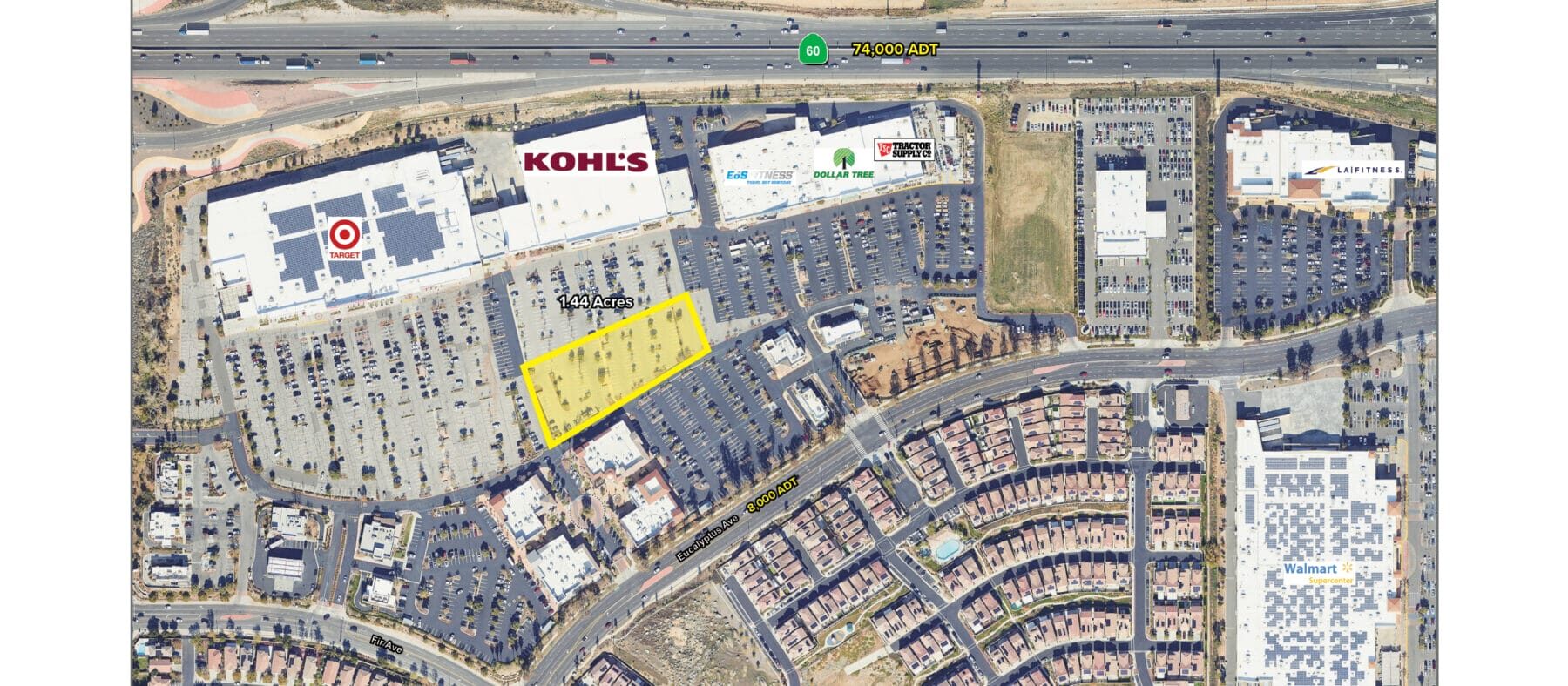 Center is anchored by Target, Kohls, EOS Fitness, and Tractor Supply Anchor Tenants in Trade area: Walmart, LA Fitness, Best Buy, Food 4 Less, CVS, Walgreens, Dollar Tree, DD’s, Cardenas, Stater Bros