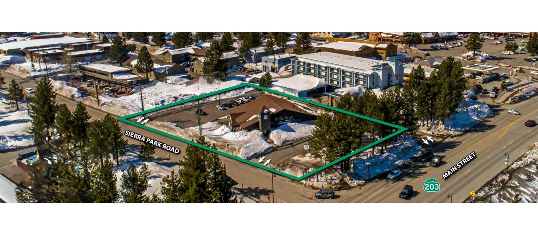 Immediately adjacent to Mammoth Hospital, Police Department, Welcome Center, Grocery Outlet, Shell gas station, and Shilo Inn