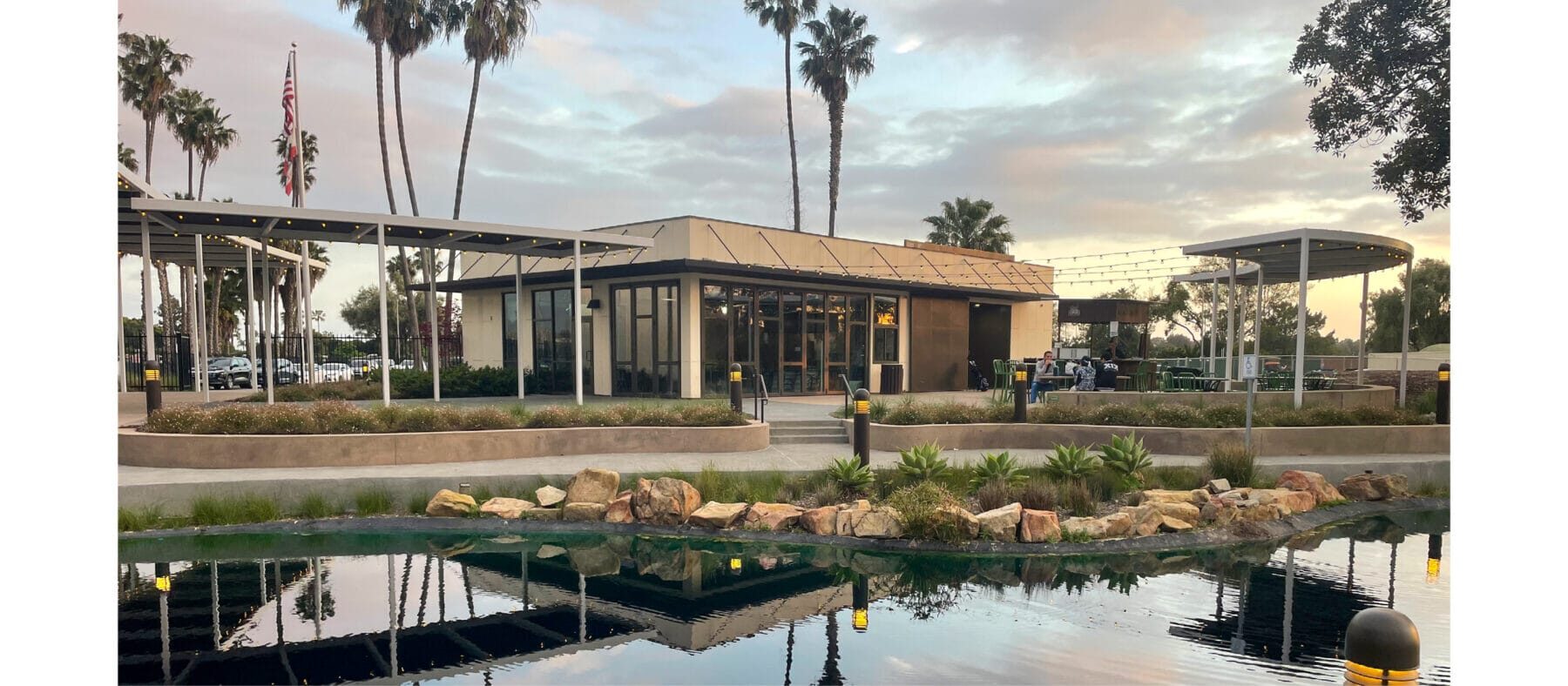 Gorgeous golf course-facing patio perfect for casual dining, live music, or family-friendly events